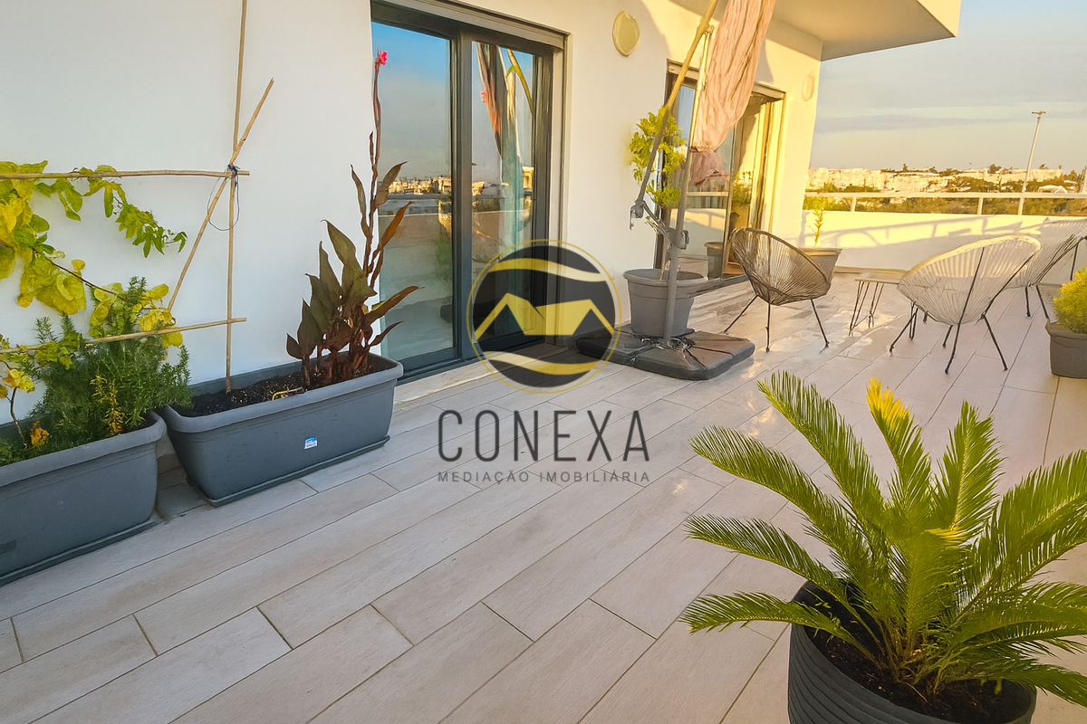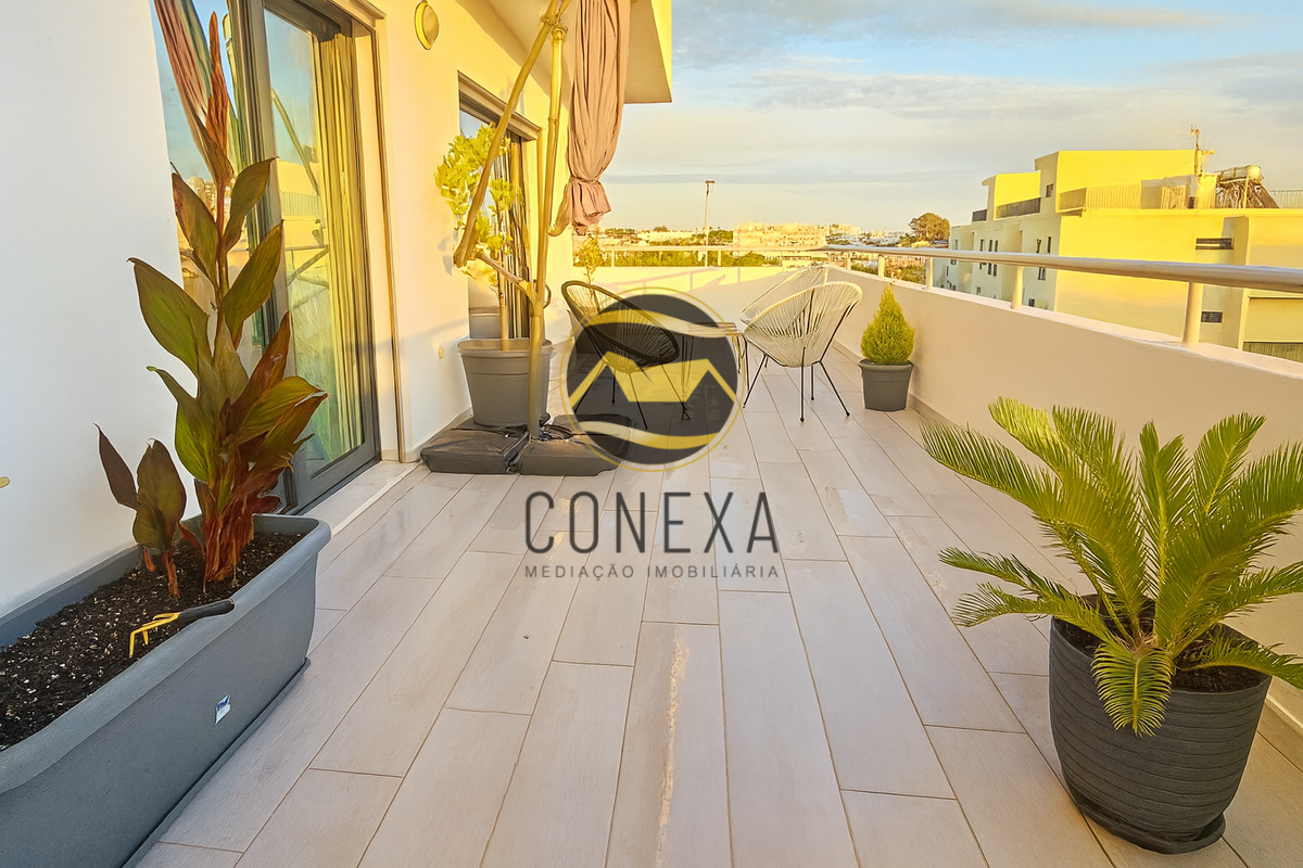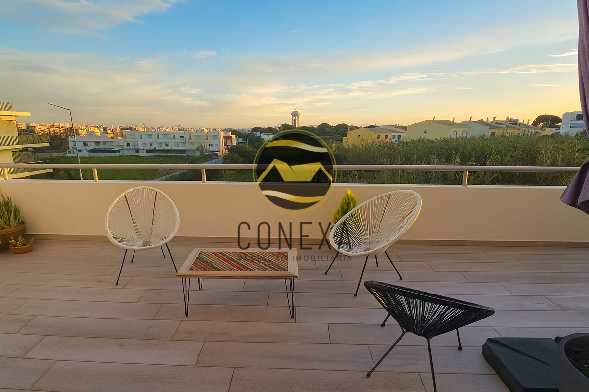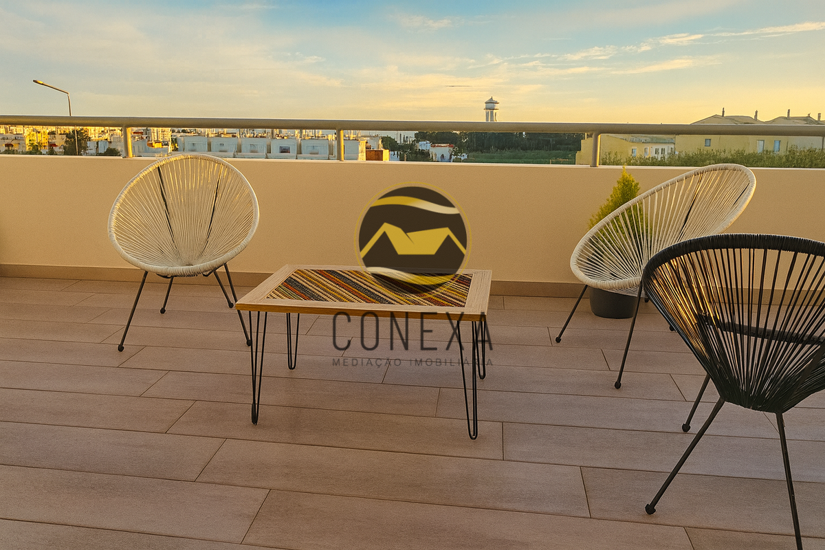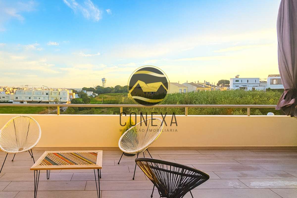 Apartamento T1 de Excelência, com Ampla Varanda e Garagem em Box, na Zona Alta de Olhão Apresentamos a oportunidade de adquirir um magnífico Apartamento T1, de construção recente (2023), que conjuga modernidade, conforto e uma localização privilegiada. Este imóvel distingue-se pela sua arquitetura e distribuição inteligente das áreas, otimizando o espaço e garantindo uma experiência de habitação de qualidade superior. Com uma ótima exposição solar totalmente virada a Sul, o apartamento beneficia de uma luminosidade natural excecional, realçando a elegância do seu interior. A área social é composta por uma ampla sala com cozinha em open space, onde se destaca a cozinha totalmente equipada com eletrodomésticos de alta qualidade da marca Bosch, garantindo funcionalidade e requinte. Para maior conveniência, o imóvel dispõe de duas casas de banho, sendo uma privativa e a outra uma casa de banho de serviço, ideal para as visitas. Na área privativa, encontrará um espaçoso quarto em suite, complementado por um prático walking closet, conferindo um toque de sofisticação e organização. Para maior conveniência, o imóvel dispõe de duas casas de banho, sendo uma privativa e a outra uma casa de banho de serviço, ideal para as visitas. Um dos maiores atributos deste imóvel é a sua generosa varanda, com mais de 30m², que se estende ao longo de todo o apartamento, proporcionando um espaço exterior ideal para momentos de lazer e descompressão. O seu conforto interior é assegurado por comodidades modernas como ar condicionado, estores elétricos e painel solar. O apartamento inclui ainda uma prática Garagem em Box na cave, um elemento fundamental para a sua segurança e comodidade. Inserido num prédio com elevador e localizado numa zona de grande tranquilidade, com jardins e amplo estacionamento exterior para os seus convidados. Este T1 representa a união perfeita entre um design contemporâneo e uma localização estratégica, oferecendo todas as condições para um estilo de vida de excelência. Agende a sua visita e descubra o seu novo Lar no Algarve! A Conexa - Mediação Imobiliária, é uma Imobiliária que centra a sua atividade na compra e venda de imóveis, pelo que se dedica a garantir negócios constantes ao prestar serviços de apoio relacionados com o imensurável ciclo das transações imobiliárias, e que tem know how na área desde 2015. O nosso objetivo primordial é a oferta de um acompanhamento personalizado e adequado às necessidades de cada potencial cliente. Oferecemos serviços de assessoria, apresentação e divulgação de imóveis, avaliação de propriedades e aconselhamento financeiro, jurídico e fiscal, entre outros. Possuímos uma vasta carteira de clientes e parcerias, pelo que temos em portfólio diversas opções de excelência para investimento em todo o Algarve. "Permita-nos um breve esclarecimento: a localização que vê do imóvel é na verdade uma morada próxima do imóvel. Por uma questão de privacidade de dados (RGPD) não podemos divulgar a morada exata do imóvel. Gratos pela compreensão".