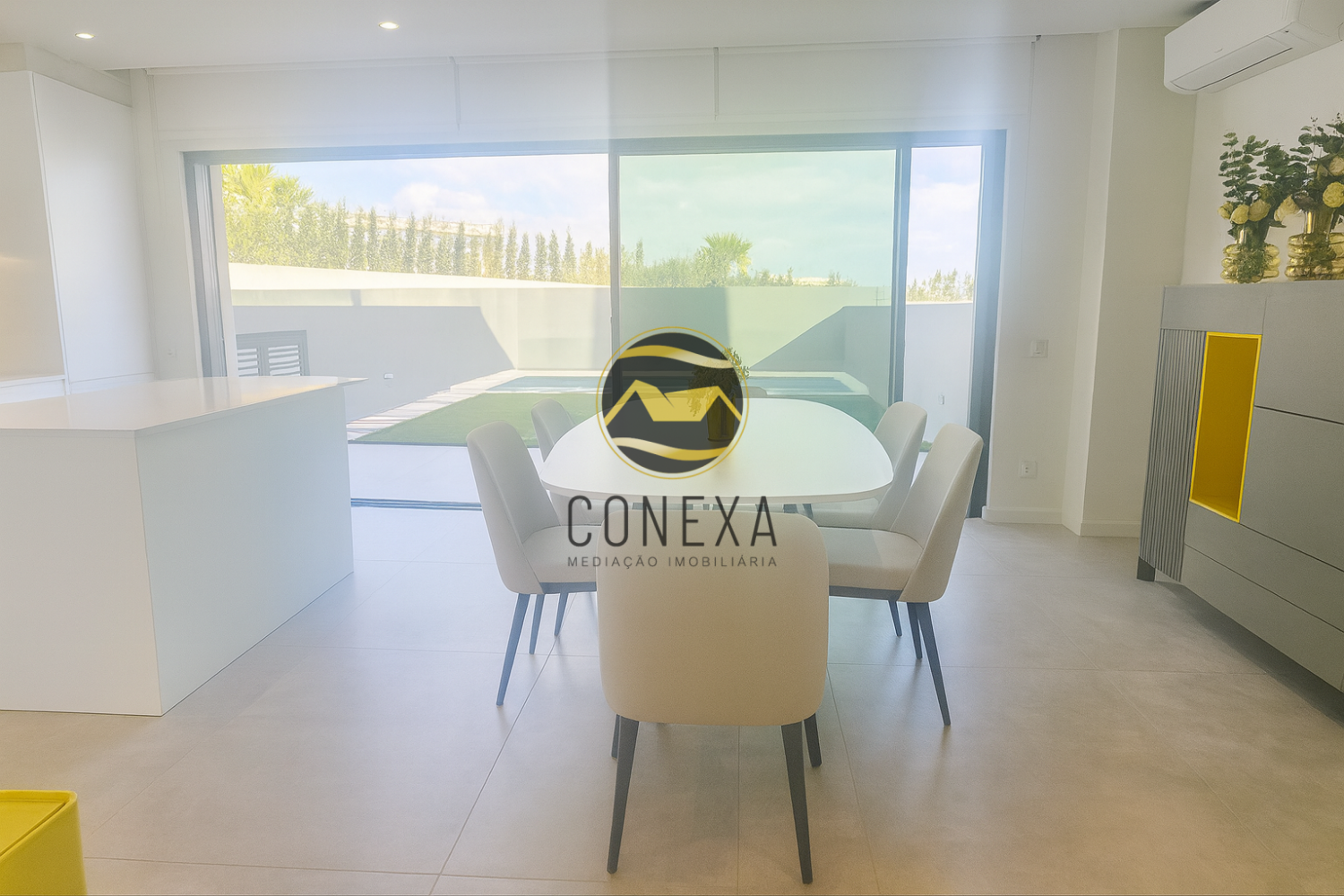 Excelente Moradia T4 com piscina, 2 lugares de estacionamento e cave no Montenegro. Esta encantadora moradia T4,, localizada numa zona privilegiada da Cidade de Faro, conta com uma maravilhosa vista sobre a Cidade e a Ria Formosa, e apresenta -se com um interior que irradia conforto e funcionalidade. Os espaços são amplos e muito iluminados, criando uma atmosfera acolhedora em cada divisão. O interior desta encantadora moradia distribui-se por 2 andares e uma cave: Ao entrar na moradia será recebido por uma ampla sala com cozinha em open space com ilha, totalmente equipada. com eletrodomésticos de gama alta. A vista nesta zona, através das suas grandes janelas, será sobre o seu agradável terraço com piscina. Neste piso encontrará ainda um prático quarto com armário embutido e uma casa de banho completa. No primeiro andar, encontram-se três suites, possuindo a master suite uma varanda com vista ria. Todos os quartos possuem armários embutidos e existe bastante espaço de arrumação. Na ampla cave encontrará mais um espaço de lazer, bem como também uma zona especifica de lavandaria, espaços extra de arrumação e a casa da máquinas da piscina. Equipada com ar condicionado para assegurar o máximo de comodidade todo o ano, este imóvel conta ainda com chão radiante aquecido nas casas de banho, proporcionando uma experiência única durante os meses mais frios. Relativamente ao espaço exterior, encontrará um esplêndido espaço, ideal para momentos ao ar livre, onde poderá relaxar, estar com os amigos ou simplesmente aproveitar a sua agradável piscina. Na cobertura encontrará para além de uma zona técnica, para painel solar e ar condicionado, uma área de lazer, que poderá ser bem aproveitada para relaxar e disfrutar da magnifica vista. No interior da propriedade terá também lugar de estacionamento para 2 viaturas Localizada numa das zonas mais cobiçadas de Faro, a 5minutos da praia e próxima do centro urbano de Faro, permite fácil acesso a diversas infraestruturas essenciais como escolas, clinicas médicas, supermercados e transportes variados facilitando assim todas as movimentações diárias necessárias aos seus residentes. Adicionalmente adentra-se rapidamente às autoestradas permitindo explorar facilmente outras localidades Algarvias ou até mesmo realizar deslocações rápidas através do aeroporto próximo. Esta residência convida-o a imaginar longas tardes passadas junto à piscina sob o sol quente português ou jantares memoráveis no seu amplo terraço, as possibilidades deste lar transcendem simples características materiais apresentando-lhe qualidade de vida superior aliada á beleza ímpar desta localização privilegiada. Venha conhecer o seu próximo Lar! A Conexa - Mediação Imobiliária, é uma Imobiliária que centra a sua atividade na compra e venda de imóveis, pelo que se dedica a garantir negócios constantes ao prestar serviços de apoio relacionados com o imensurável ciclo das transações imobiliárias, e que tem know how na área desde 2015. O nosso objetivo primordial é a oferta de um acompanhamento personalizado e adequado às necessidades de cada potencial cliente. Oferecemos serviços de assessoria, apresentação e divulgação de imóveis, avaliação de propriedades e aconselhamento financeiro, jurídico e fiscal, entre outros. Possuímos uma vasta carteira de clientes e parcerias, pelo que temos em portfólio diversas opções de excelência para investimento em todo o Algarve. "Permita-nos um breve esclarecimento: a localização que vê do imóvel é na verdade uma morada próxima do imóvel. Por uma questão de privacidade de dados (RGPD) não podemos divulgar a morada exata do imóvel. Gratos pela compreensão".