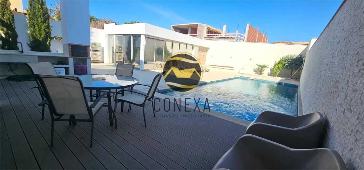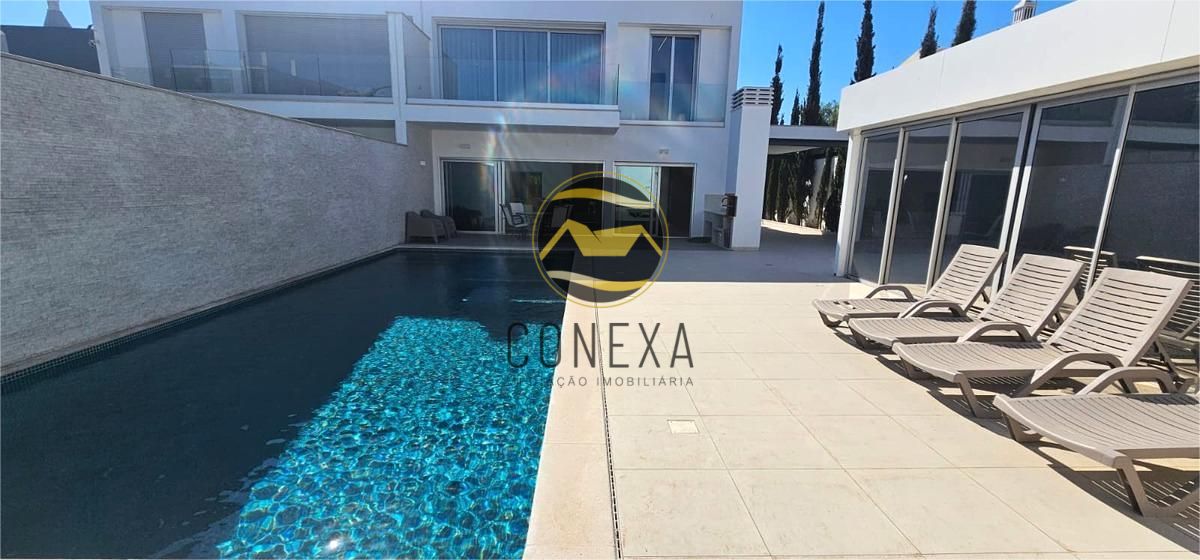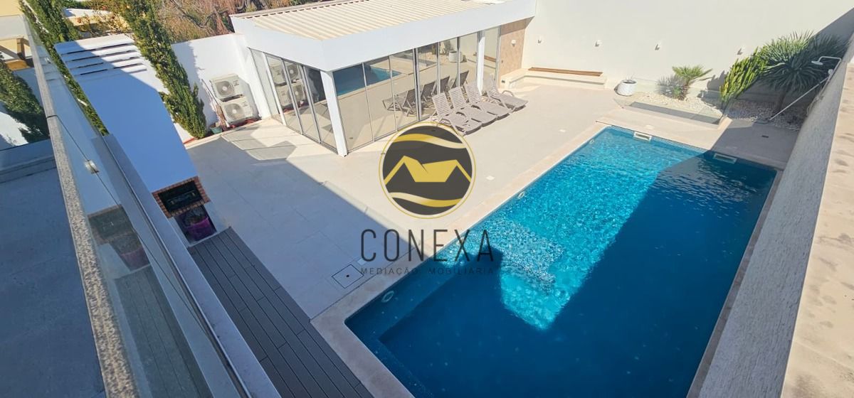 Magnífica Moradia de 2 pisos, situada em Montenegro (Faro) Esta Moradia de 5 Quartos destaca-se pelo seu interior moderno e sofisticado e pelo seu amplo espaço exterior com amplas zonas de lazer e piscina. Ao entrar no imóvel, será imediatamente acolhido por um ambiente cuidadosamente planeado, o seu jardim de inverno o levará até à sua luminosa Sala com Cozinha em open space proporcionando uma leveza e tranquilidade únicas ao ambiente. A Sala destaca-se pelo seu conforto e praticalidade máxima, com janelas de grandes dimensões e acesso direto à zona da piscina. A moderna Cozinha com ilha, totalmente equipada é ideal para refeições descontraídas em família ou para receber amigos, sendo complementada por uma ótima zona contigua de Lavandaria e arrumação. Neste piso para além da área social irá encontrar 2 Quartos e duas casas de banho. Subindo ao primeiro andar, encontrará uma extraordinária Master Suite, com uma área invejável, onde se incluem 2 amplos closets com muita arrumação. Esta Suite encontra-se ainda virada a Nascente, possuindo uma varanda com vista privilegiada sobre a piscina. Neste piso encontrará ainda mais 2 Quartos com armários embutidos e varanda, e possuindo uma casa de banho partilhada entre ambos. Como complementos ao seu conforto encontrará ar-condicionado em todas as divisões, garantindo uma temperatura amena durante todo o ano; chão radiante que complementa a sensação de aconchego nos meses mais frios.; e estores elétricos com automatização centralizada. Ao nível de eficiência energética este imóvel possui para além do painel solar, painéis fotovoltaicos. Ao nível de espaço exterior encontrará áreas bem versáteis, entre as quais um amplo espaço de lazer com espreguiçadeiras e piscina para disfrutar das quentes tardes algarvias, uma zona social com barbeque e espaço de refeições para disfrutar em família ou com amigos, zona de parqueamento para várias viaturas e ainda um versátil Anexo Independente com cave, que poderá ser utilizado como área de ginásio, estúdio, ou área adicional para convívio, possuindo também uma casa de banho completa de apoio à piscina. A Cave do anexo poderá ser utilizada como garrafeira, sala de cinema ou outros. Localizada numa região privilegiada perto das melhores infraestruturas urbanas disponíveis em Faro dá fácil acesso à autoestrada assim como diversas opções de transportes públicos facilitando deslocações rápidas tanto dentro quanto fora da cidade .O imóvel fica ainda próximo a bancos, farmácias, jardins, supermercados e escolas, patrocinando qualidade na conveniência diária. Finalmente, a proximidade às praias torna possível desfrutar do melhor do Algarve num instante! Esta moradia não é apenas uma casa, é um estilo de vida, uma oportunidade para quem sabe valorizar os bons momentos da vida! Venha conhecer o seu próximo lar! A Conexa - Mediação Imobiliária, é uma Imobiliária que centra a sua atividade na compra e venda de imóveis, pelo que se dedica a garantir negócios constantes ao prestar serviços de apoio relacionados com o imensurável ciclo das transações imobiliárias, e que tem know how na área desde 2015. O nosso objetivo primordial é a oferta de um acompanhamento personalizado e adequado às necessidades de cada potencial cliente. Oferecemos serviços de assessoria, apresentação e divulgação de imóveis, avaliação de propriedades e aconselhamento financeiro, jurídico e fiscal, entre outros. Possuímos uma vasta carteira de clientes e parcerias, pelo que temos em portfólio diversas opções de excelência para investimento em todo o Algarve. "Permita-nos um breve esclarecimento: a localização que vê do imóvel é na verdade uma morada próxima do imóvel. Por uma questão de privacidade de dados (RGPD) não podemos divulgar a morada exata do imóvel. Gratos pela compreensão".